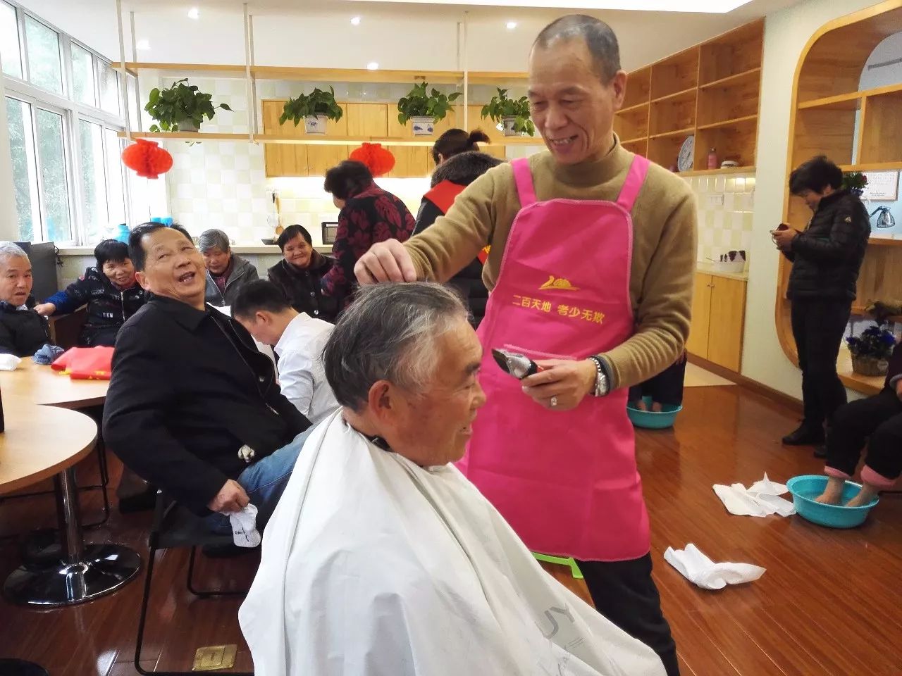 活動開始沒幾分鐘,義務理發(fā)區(qū)就排起了長長的隊伍,二百的專業(yè)理發(fā)人員“朱師傅”一邊仔細地為每一位老年者理發(fā),一邊同他們聊家常,爽朗的笑聲充斥著整個大廳。